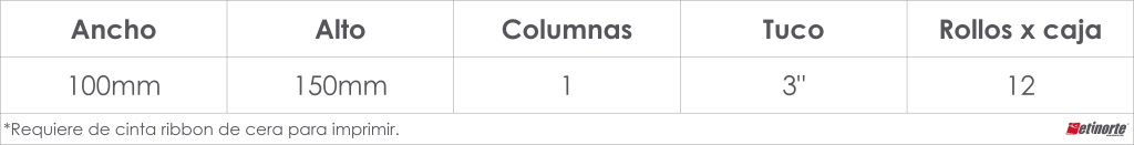 Sé el primero en valorar “ETIQUETA 100MMX150MM (4″X6″) TTB 1C RX1000 T3″ TL”