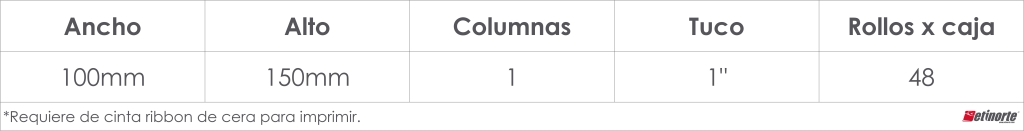 ETIQUETA 100MMX150MM (4″X6″) TTB 1C RX250 T1″ TL