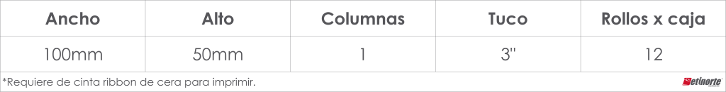 ETIQUETA 100MMX50MM (4″X2″) TTB 1C RX2000 T3″ TL